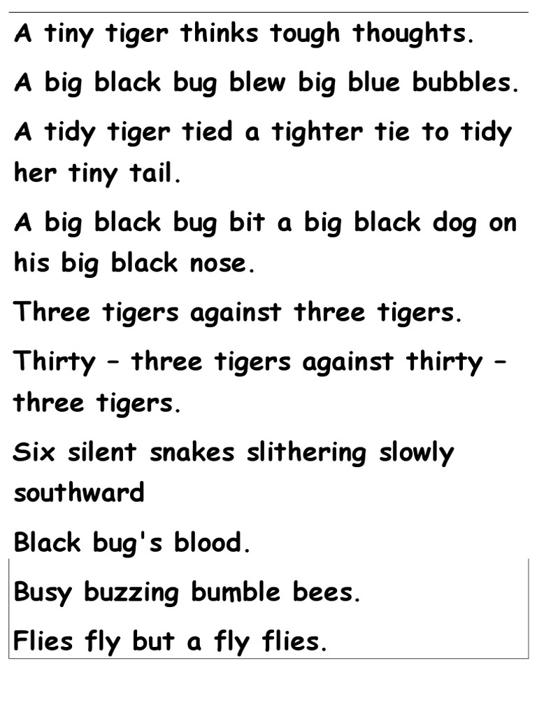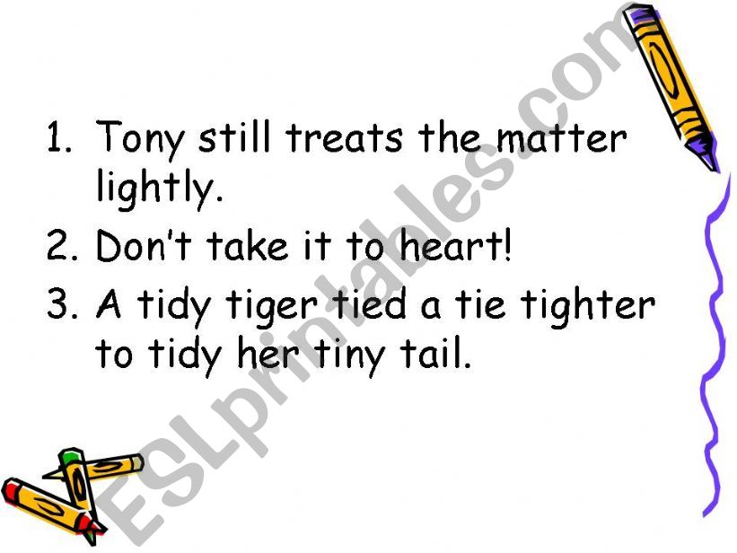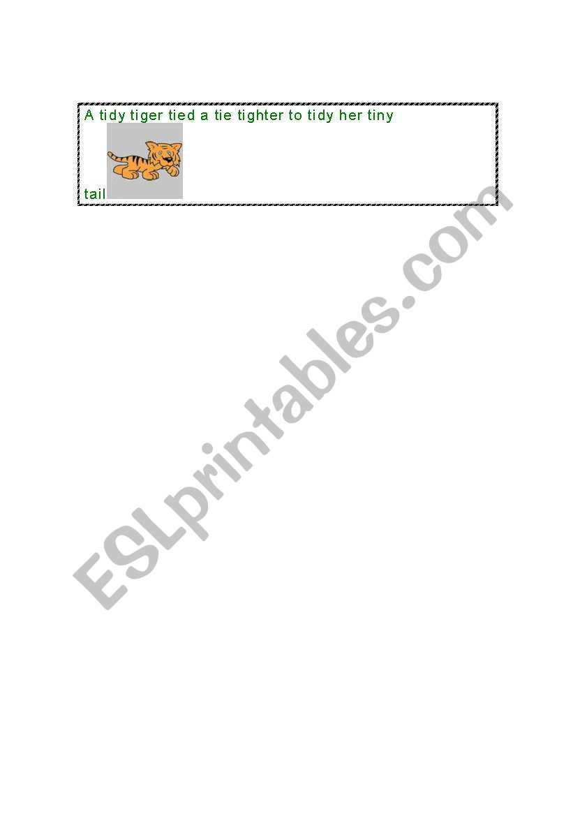 A Tidy Tiger Tongue Twister A Tidy Tiger Tongue Twister : You must repeat them as quickly as possible whilst still making sure you are speaking clearly.