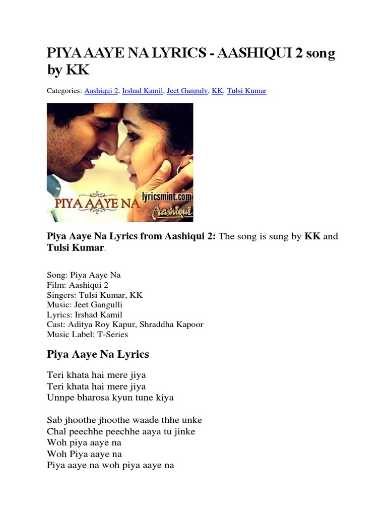 Aashiqui 2 Songs Lyrics In English Aashiqui 2 Songs Lyrics In English - Aashiqui 2 songs sun raha hai lyrics with english meaning translation.