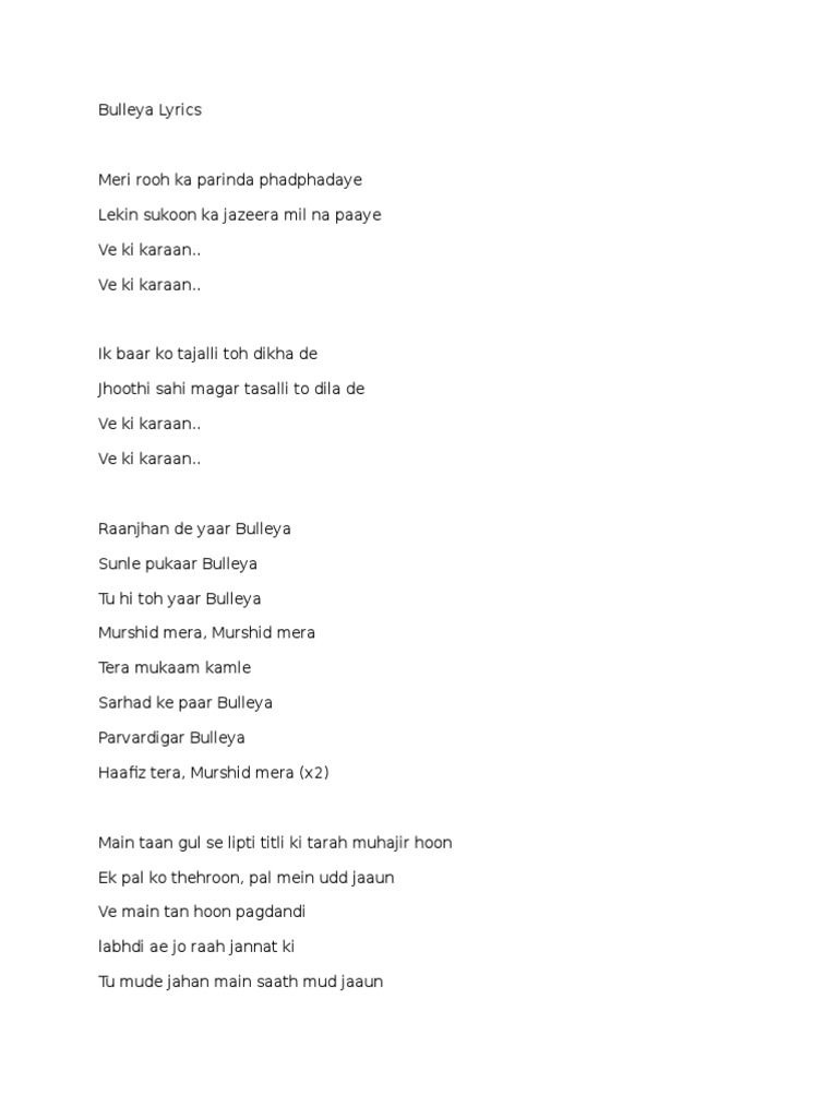 Bulleya Lyrics In English Bulleya Lyrics In English : This is very likely song from the million of people.