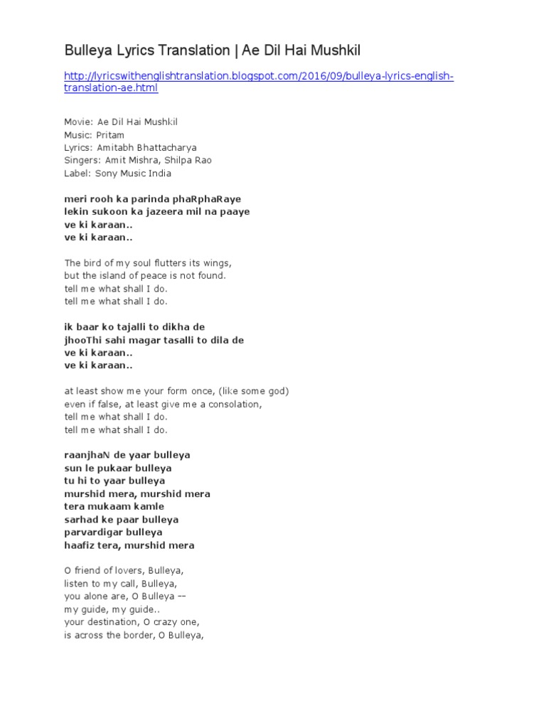 Bulleya Lyrics Meaning In Hindi