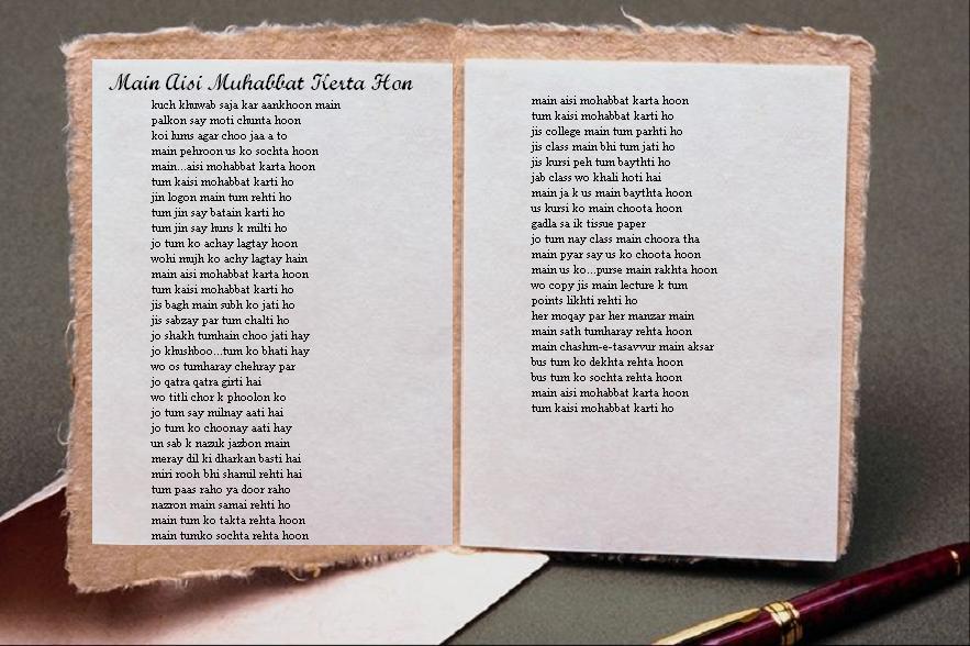 Main Aisi Mohabbat Karta Hoon Main Aisi Mohabbat Karta Hoon : Kuch khuwaab saja kar aankhon mai palkon se moti chunta hun koi lums agar cho0 jaye tu mai pehron tumko.