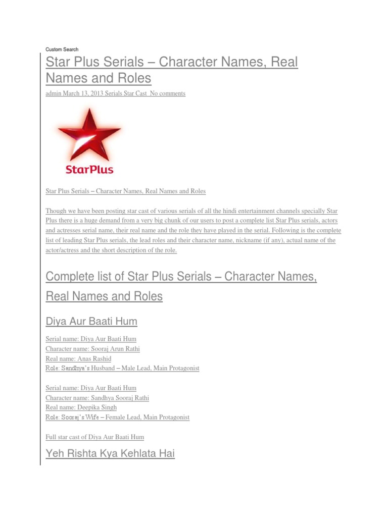 Star Plus Serial List 2013 Star Plus Serial List 2013 - We exhibit desi serial channels broadcast online.